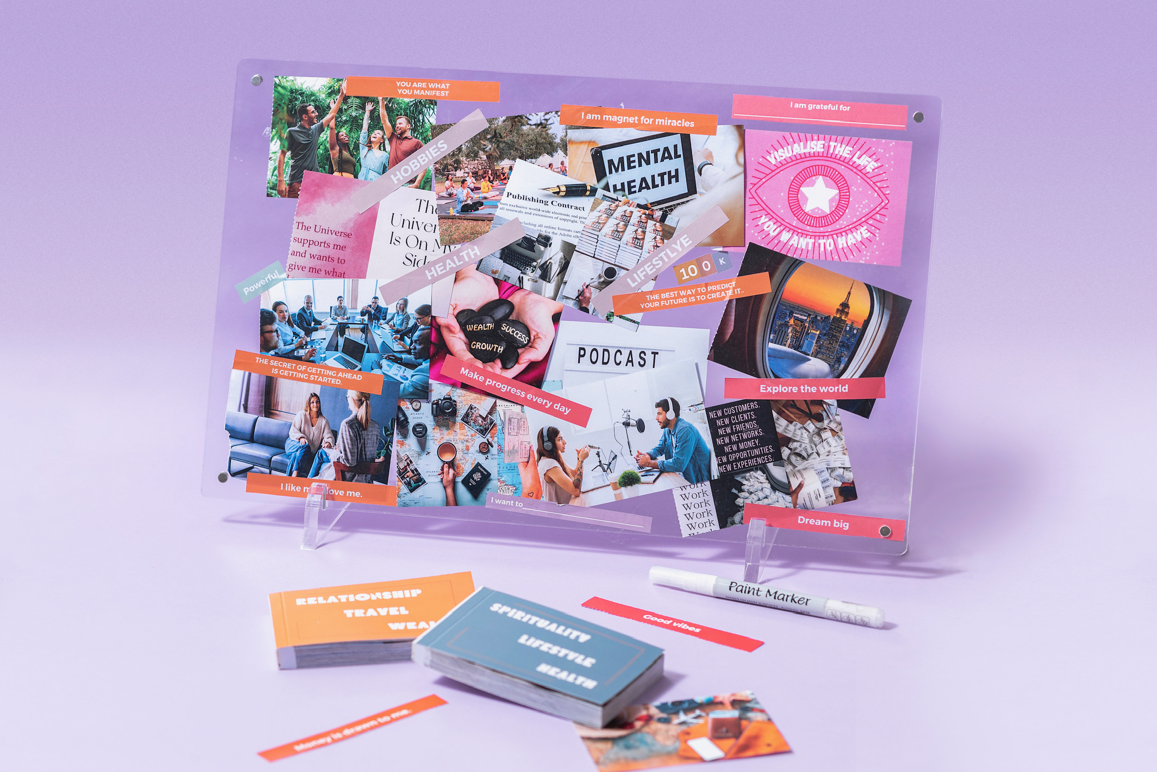 • 3 photo booklets with 9 different topics and 300+ photos across categories.(health, wealth, travel, relationship, career, hobbies, spirituality, sports, and lifestyle). Each booklet has perforated paper for easy tearing.